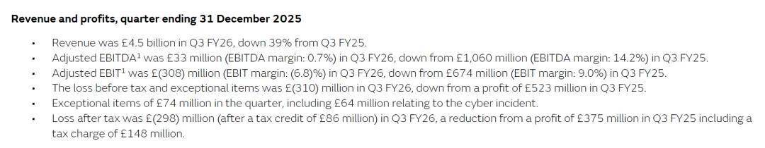 「图片来源:捷豹路虎2026Q3财报」